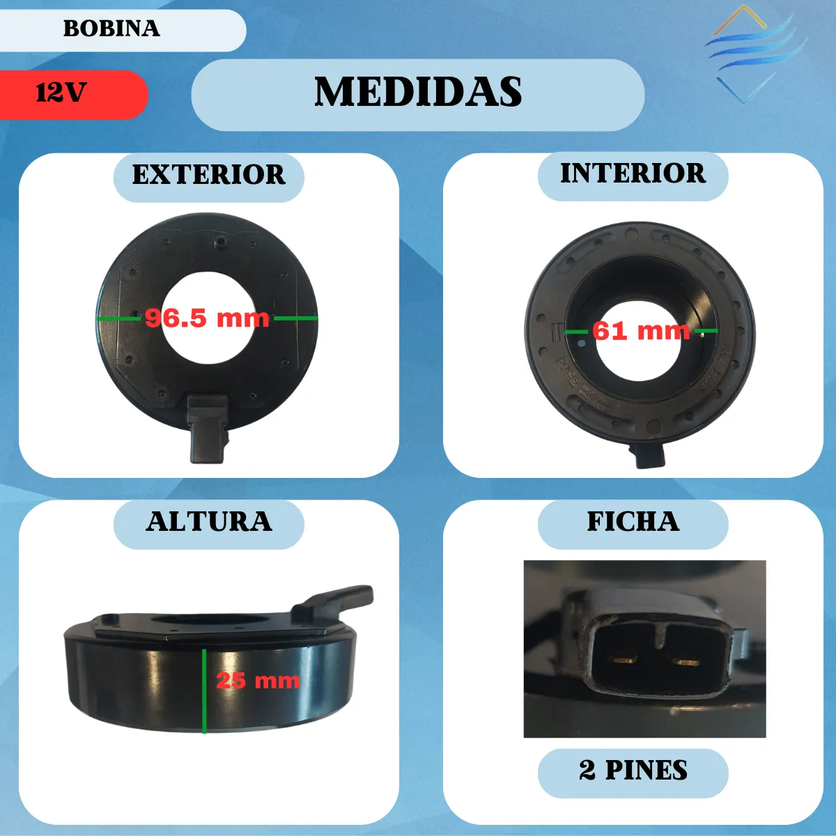 Bobina Compresor Aire Acondicionado Denso 10s 12v 96x61x25